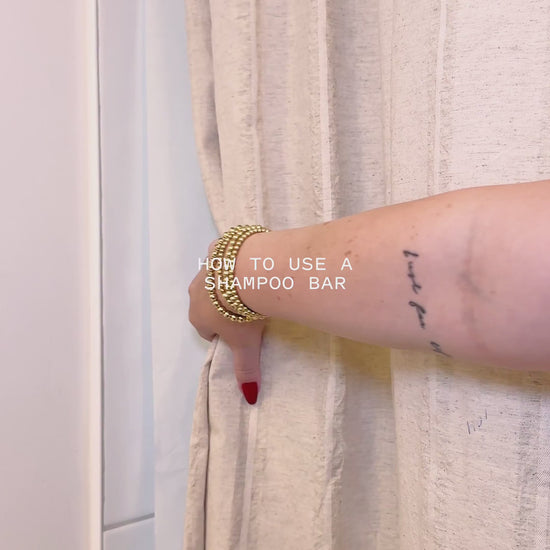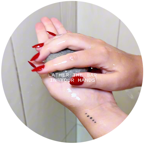 2. Rub the bar directly onto your hair or between hands to create a rich lather.
