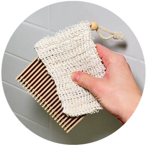 2. Rub the bar directly onto your hair or between hands to create a rich lather.