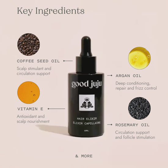 Castor, Coffee Seed, and Rosemary Oils energize the scalp, helping hair appear denser and more resilient.